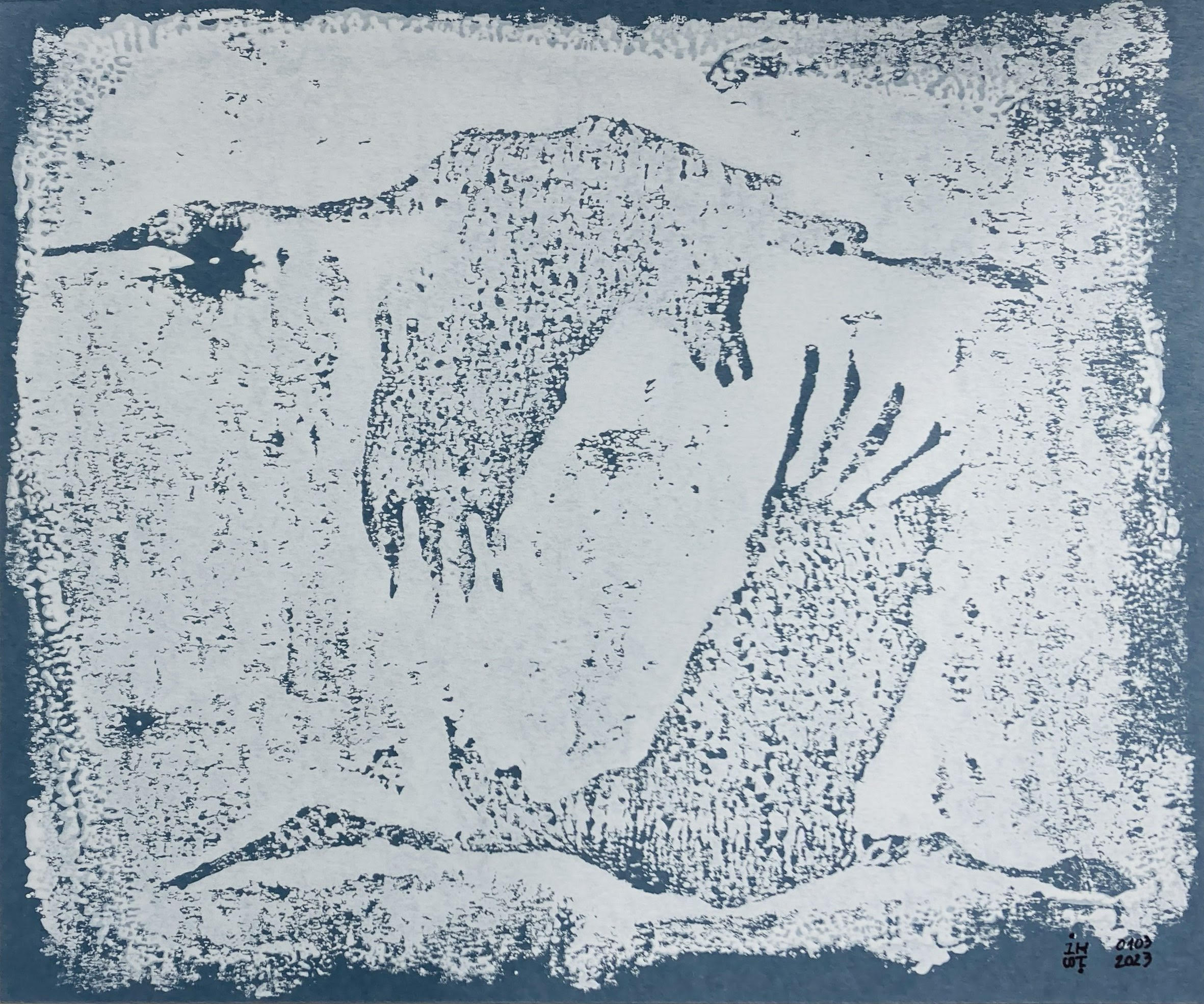 Monotypes zijn een drukvorm, waarbij elke druk uniek is. Ik kies voor beperkte kleuren en heldere vormen. Tijdens het drukproces ontstaan vaak toevallige texturen en vormen. Juist dat onvoorspelbare van deze techniek spreekt me zeer aan.